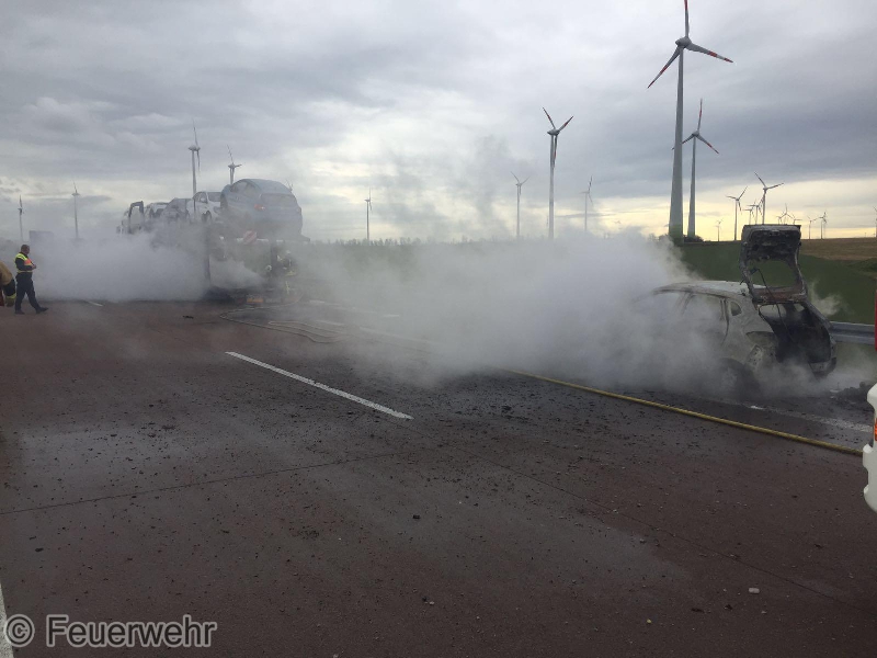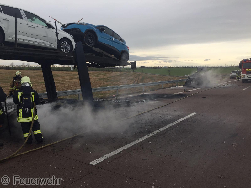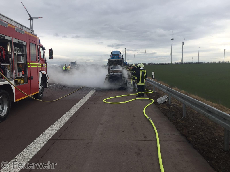 Heute Mittag wurden wir mit dem Stichwort LKW-Brand auf die A38 in Fahrtrichtung Leipzig alarmiert. Ebenfalls alamiert waren die Feuerwehren Esperstedt, Alberstedt, Querfurt und Obhausen. Vor Ort waren die Wehren aus dem Saalekreis schon mit den Löscharbeiten beschäftigt. Es handelte sich um einen Autotransporter. Unsere Kräfte unterstützten die Kameraden noch beim beräumen der Einsatzstelle.